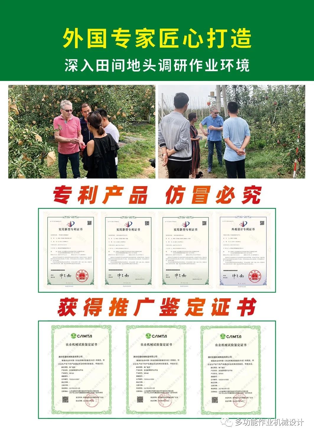 针对林果业果实采摘、搬运、修剪、套袋、疏花疏果等作业难、劳动强度大、费时费力、危险系数高等问题,自主研发的多功能果园作业平台系列产品不仅可以满足林果业采摘、修剪等高空作业需求,还可以实现运输、户外发电、搬运、叉车装载等多种功能。该系列产品已获得3项推广鉴定证书并获得新疆地区农机产品补贴